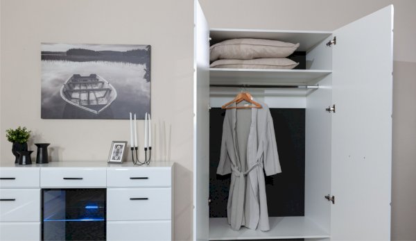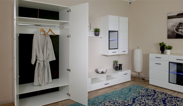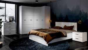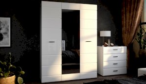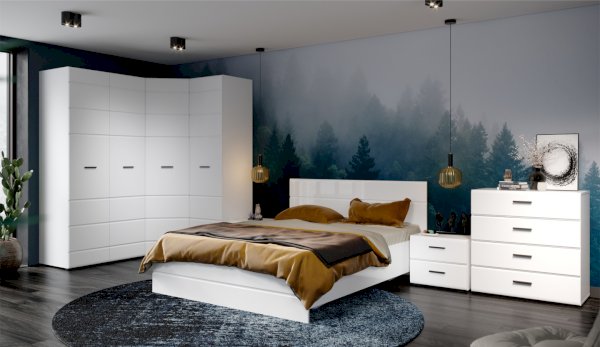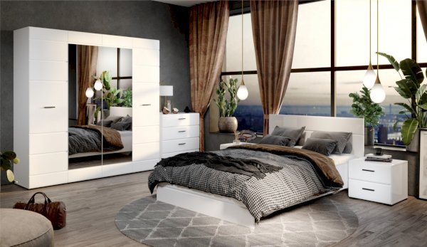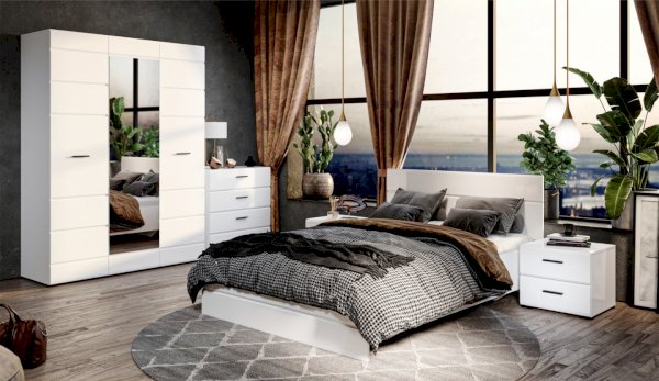 Спальня Йорк отличается стильным европейским дизайном. Глянцевые белые фасады High Gloss из МДФ отражают световые потоки, спальня выглядит динамично, воздушно и легко, что актуально для небольших помещений. Строгая горизонтальная фрезеровка украшает фасады, а контрастные черного цвета ручки и задняя стенка делают спальню особенно выразительной. Спальня универсальна, сочетается с любой мебелью и отделкой. Состоит из отдельных модулей, благодаря чему можно легко подобрать мебель для комнаты любого размера. Выполнена из экологически безопасных и надежных материалов.