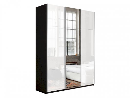 Шкаф-купе 3-х дверный Прайм Зеркало/Белое стекло/Зеркало 1800х2300х570 мм