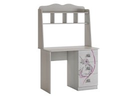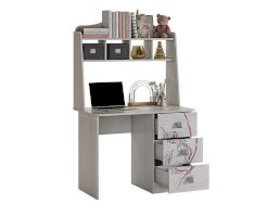 Стильный и модный стол детской «Фэнтези» - обрадует каждого ребенка. Компактный стол прекрасно впишется даже в маленькое пространство детской комнаты. Удобная столешница подойдет как для письма, так и для занятий на компьютере или ноутбуке. Открытые полки надстройки стола хорошо подходят для хранения учебников и школьных принадлежностей. В 3-х выдвижных ящиков поместится все, что необходимо для учебы и творчества. Необычный принтерный рисунок на фасадах выдержан в общем стилистическом решении. Рисунок устойчив к истиранию и ультрафиолету.