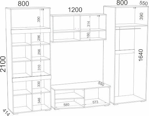 Функционал хранение одежды / хранение посуды / зона для ТВ