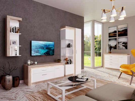 Модульная гостиная Люмен Дуб сакраменто/Белый снег глянец (Ижмебель)