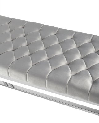 Обивка сиденья выполнена из мягкого велюра - приятного на ощупь, износостойкого и простого в уходе материала. Декорирована каретной стяжкой, которая обладает не только эстетическими свойствами, благодаря такой строчке ткань меньше растягивается и деформируется в процессе эксплуатации.