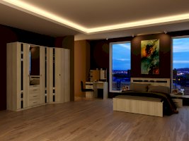Спальный гарнитур Николь благодаря белому цвету выглядит воздушным и современным. Черное стекло и зеркала добавляют контраст и изящество.