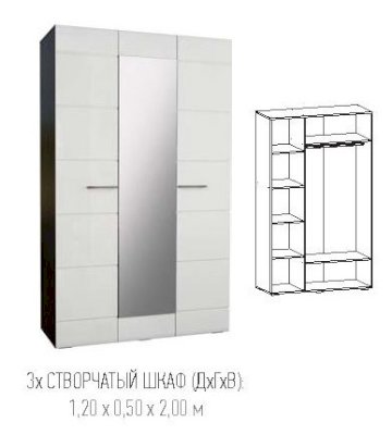 Шкаф 3-х створчатый с зеркалом мод.№4