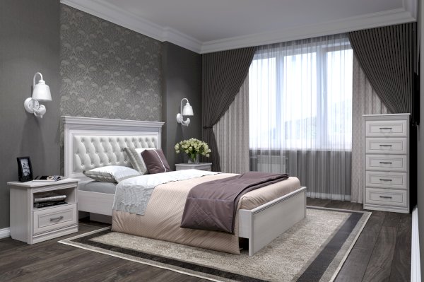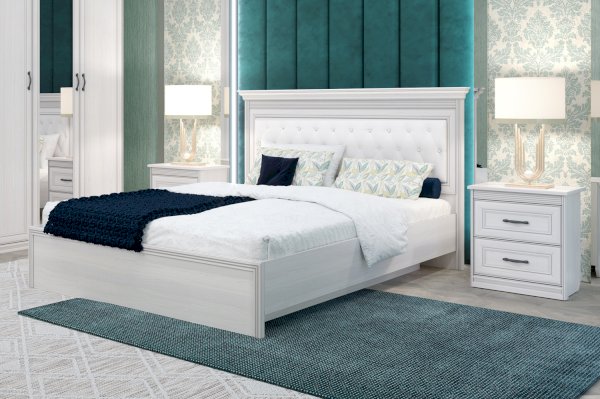 При оформлении коллекции в классическом стиле используются такие элементы как: рельефный декоративный профиль и накладки МДФ , элегантные строчки и каретная стяжка в изголовье кровати.