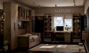 Организовать хранение в комнате подростка поможет вместительный навесной шкаф Nature 81. Навесной шкафчик шириной 2241 мм с двумя открытыми отделениями и тремя за стеклянными тонированными фасадами. Стеклянные полки выдерживают до 2 кг каждая. Шкаф декорирован составным карнизом в стилистике всей молодежной коллекции Nature. Уместно дополнит компоновку с навесным шкафчиком Nature 80 Кровать подростковая или Nature 84 Cтол письменный. К шкафу можно докупить модуль ADELE 87 Подсветка.