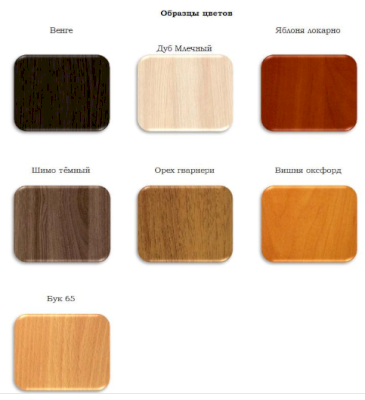 Цвета: Бук, Вишня, Орех гварнери, Итальянский орех, Венге, Шимо тёмный, Дуб млечный