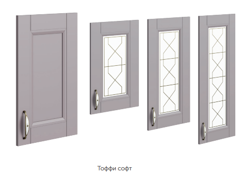 В дизайнерских коллекциях кухонь Chalet варианты цвета фасада строго соответствуют рисунку стекла и виду ручек