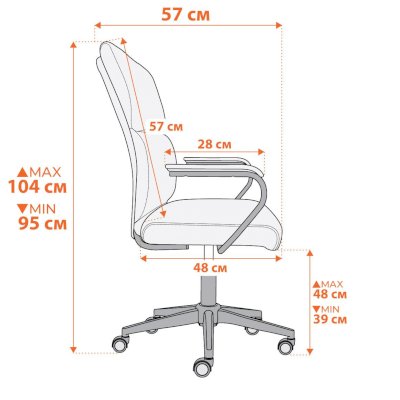 5-лучевая полиамидная крестовина диаметром 650 мм устойчива и надежна. Ролики с полиуретановым нанесением обеспечивают бесшумное и плавное передвижение, подходят для паркета и ламината. Диаметр штока – 11 мм. Газлифт 3 класса с ходом 100 мм позволяет легко регулировать высоту сиденья для достижения удобного положения. Фиксированные подлокотники из металлической трубы с порошковым покрытием и декоративной пластиковый накладкой обеспечивают дополнительный комфорт, помогают снизить нагрузку с поясницы и спины. Сиденье из фанеры 10 мм и спинка с каркасом из металла с наполнителем из ППУ плотностью не менее 22 кг/м³ обеспечивают оптимальную поддержку при длительном времяпрепровождении за компьютером. Обивка из флока плотностью 320 г/м² с водоотталкивающей пропиткой не только приятна на ощупь, но и устойчива к износу, что делает эту модель идеальной для частого использования.