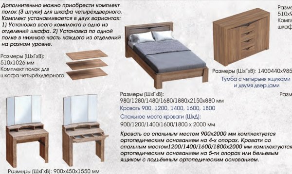 Спальное место: 90/120/140/160/180х200