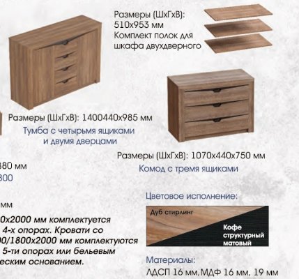 Модульная спальня Соренто Дуб стирлинг/кофе (МБГ) - за 38 496 руб. в Череповце. Купите на сайте cherepovec.onlinemarketmebeli.ru или по телефону 8(800)505-30-63 уже сегодня! Уточнить наличие, комплектацию, актуальную цену можно бесплатно у менеджера ежедневно. Закажите Модульная спальня Соренто Дуб стирлинг/кофе (МБГ) до конца акции! Доступна покупка в кредит, рассрочку. Доставим со склада или на заказ.