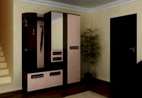 Отличительные особенности прихожей — функциональный дизайн и современные оттенки текстур. Конструкция данной модели включает в себя все необходимое: зеркало, шкаф, пенал, вешалки, ящики и множество полок для различных мелочей.